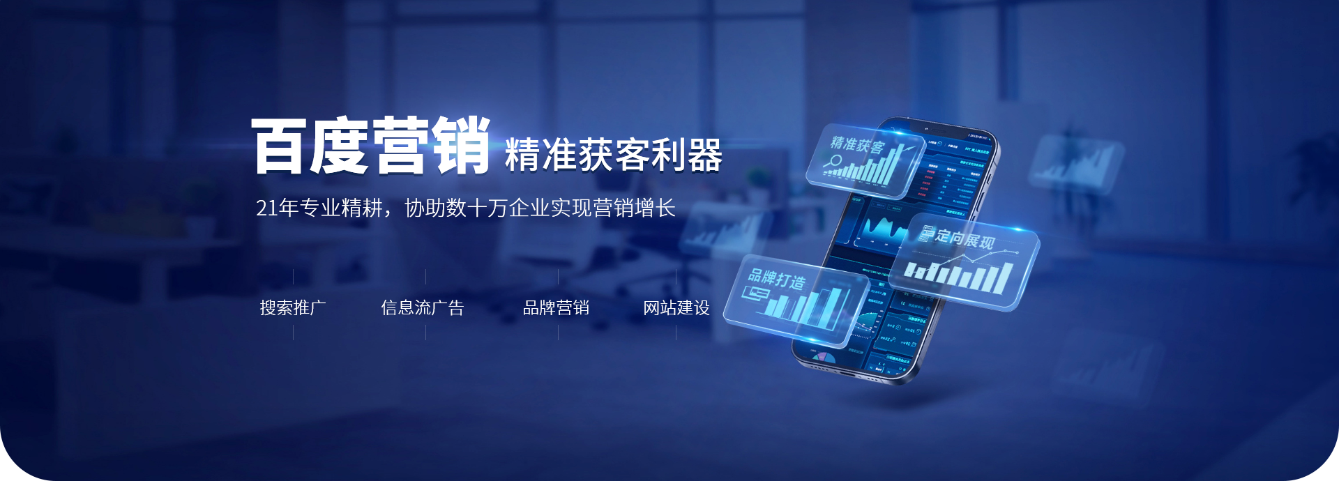 百度搜索推廣讓有需求的用戶通過關鍵詞搜索主動找到您,百度信息流再把您的廣告信息推送給鎖定的高潛力用戶, 為您帶來精準客戶的同時拓展更多客戶流量和回頭客